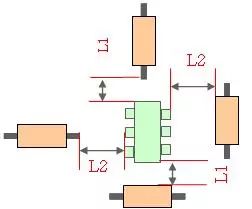 異種器件:≥0.13*h+0.3mm(h為周圍近鄰元件最大高度差)