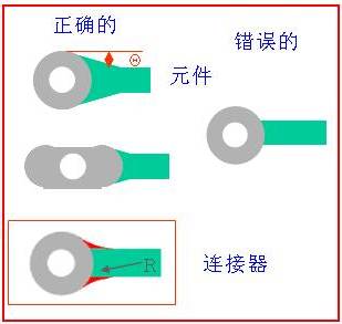 如果導(dǎo)線比直插器件的焊盤小的話需要加淚滴上圖右邊的方式。