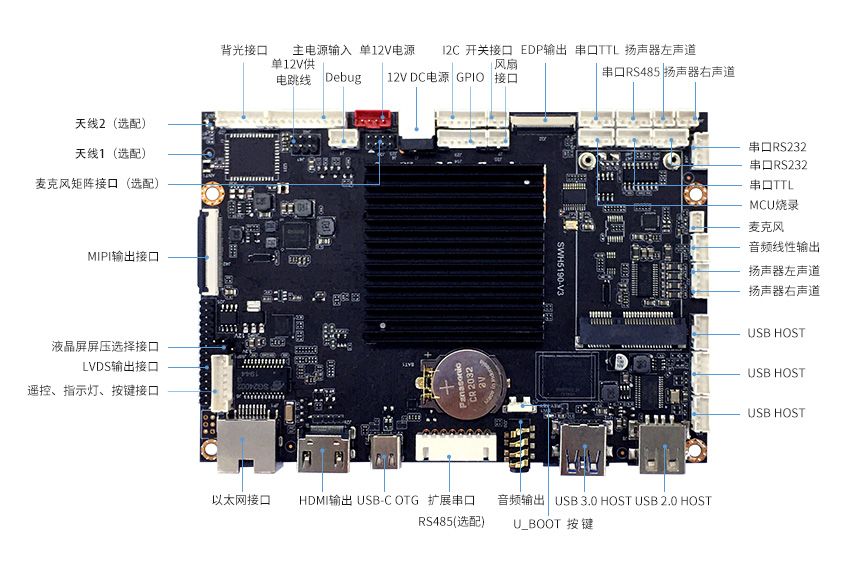 四選二視頻輸出可選:HDMI、LVDS、eDP、MIPI